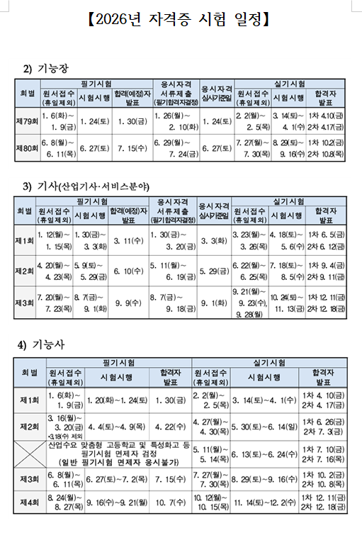 26년 자격증 시험 일정